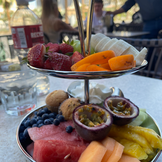 Alexxa's was an excellent choice. The lively ambiance, combined with a delectable menu of brunch favorites and refreshing drinks, perfectly energized us for another day of exploration. It was perfectly situated across from the Bellagio so we got to see the Fountain shows. Started our meal off with the fresh Fruit Tower that had exotic seasonal fruit and coconut whipped cream and to drink we had the Jungle bird (Mount Gay XO, Pineapple Juice, Campari, Lime Juice, Simple Syrup) and Strawberry Fields Cocktails (Old Forrester Whiskey, Strawberry Pureé, Lemon Juice, Agave). For my meal i decided to go with the Snow crab omelet (Deep Sea Snow Crab, Asparagus, Havarti, Hollandaise, Fine Herbs, Alexxa’s Breakfast Potatoes, English Muffin) and hubby had the CINNAROLL WAFFLE (Cream Cheese Frosting, Blueberries, Raspberries, Candied Pecans) with a side of bacon - everything was absolutely delicious and filling and it helped start our day off right!!
